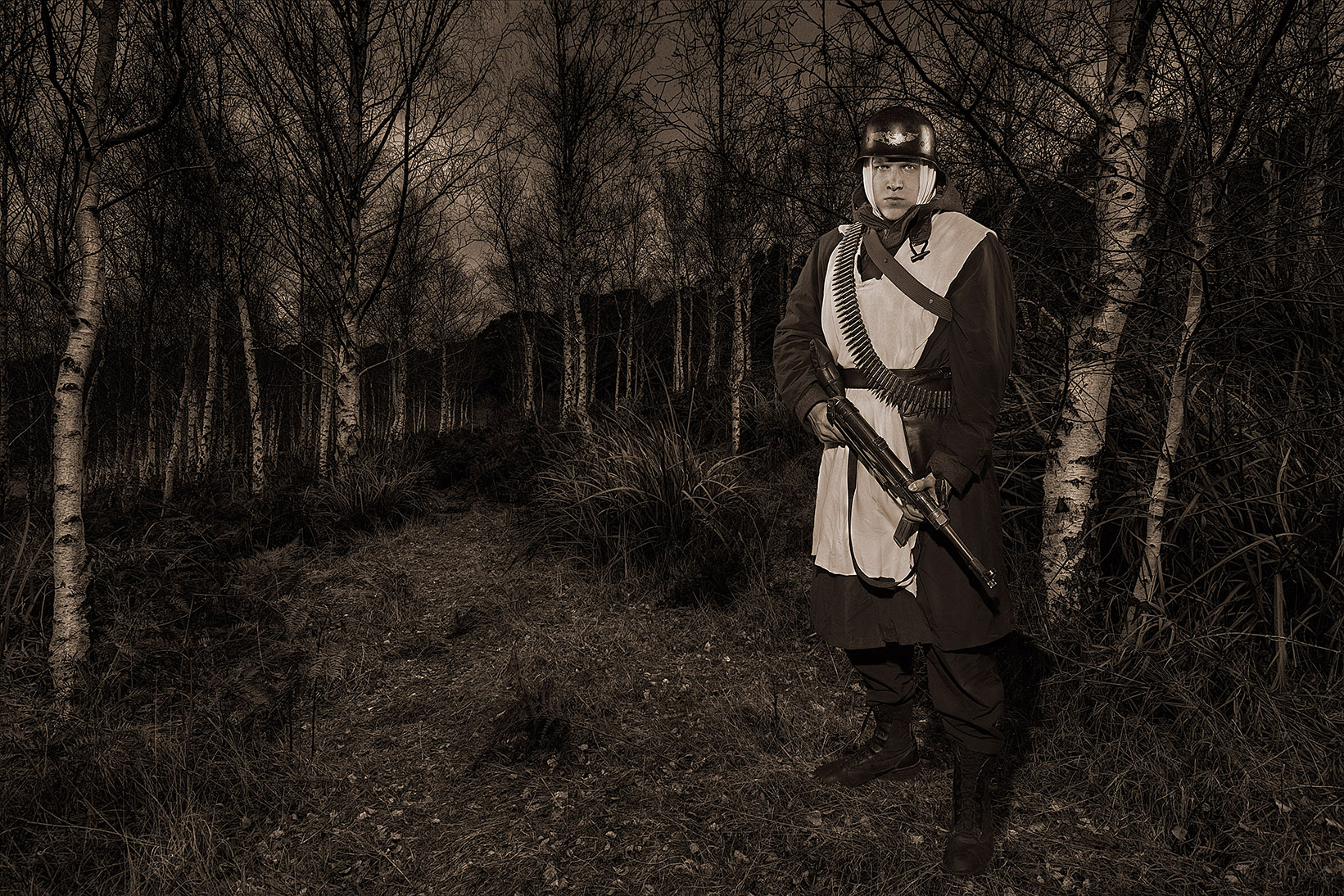 COMMENTS: This photograph of a German WWII Soldier is out of my Warrior Series for my Major Project Sem. B 2012. The Series will contain 10-15 Environmental Portraits of different Warriors/ Soldiers, out of different time periods and from different cultural Background. I've always liked historical warriors and their armour and weapons, so the decision about what I was going to do for my Major this year was very easy for me.