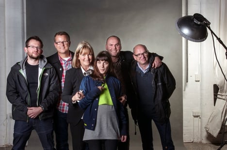 Photo caption: Phase One reps James Johnson (far left) and Colin Johnston (far right) pictured here with (l-r) well known Australian photographer, Ian van der Wolde, PSC's Managing Director, Julie Moss, Studio Manager, Dru Blumensheid and Chief Technology Officer, Adi Selimanovic.