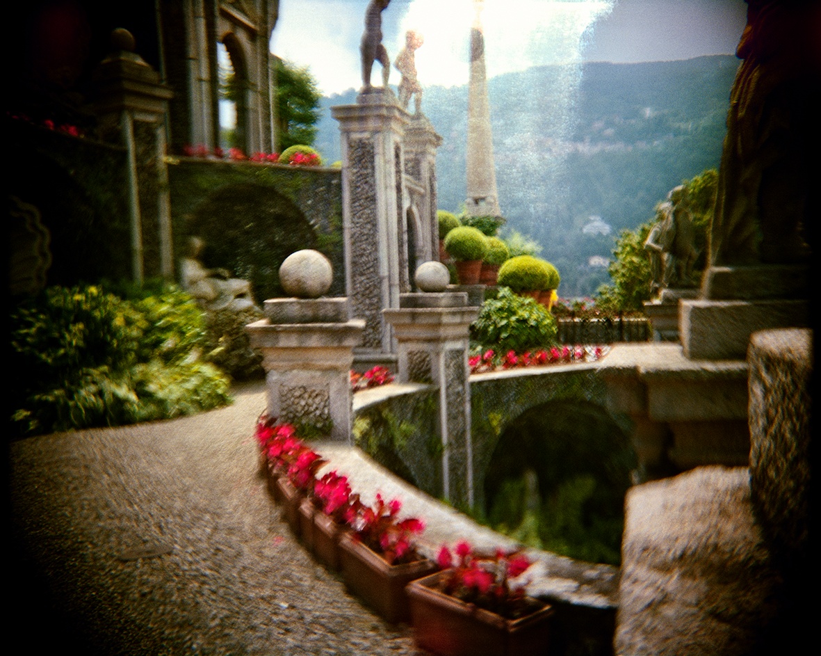 Christopher Koller’s latest suite of photographs transports viewers to Isola Bella, an extravagant Baroque palace garden on an island in Lake Maggiore, surrounded by the foothills of the Italian Alps. Completed in 1671, the garden and palace are still owned by descendants of the Borromeo family, Milanese bankers and allies of the Sforzas, who used them to stage parties and theatrical events.