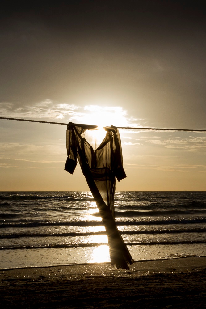 COMMENT: The photo was taken at Chelsea beach, I live two doors from the beach so I consider it my backyard. it is my surrounds and my dress, I wanted a personal self portrait for myself that links with self identity. I prefer portraits that don't show me, but suggests it is me. I consider myself a spiritual person and this photo embodies that for me.